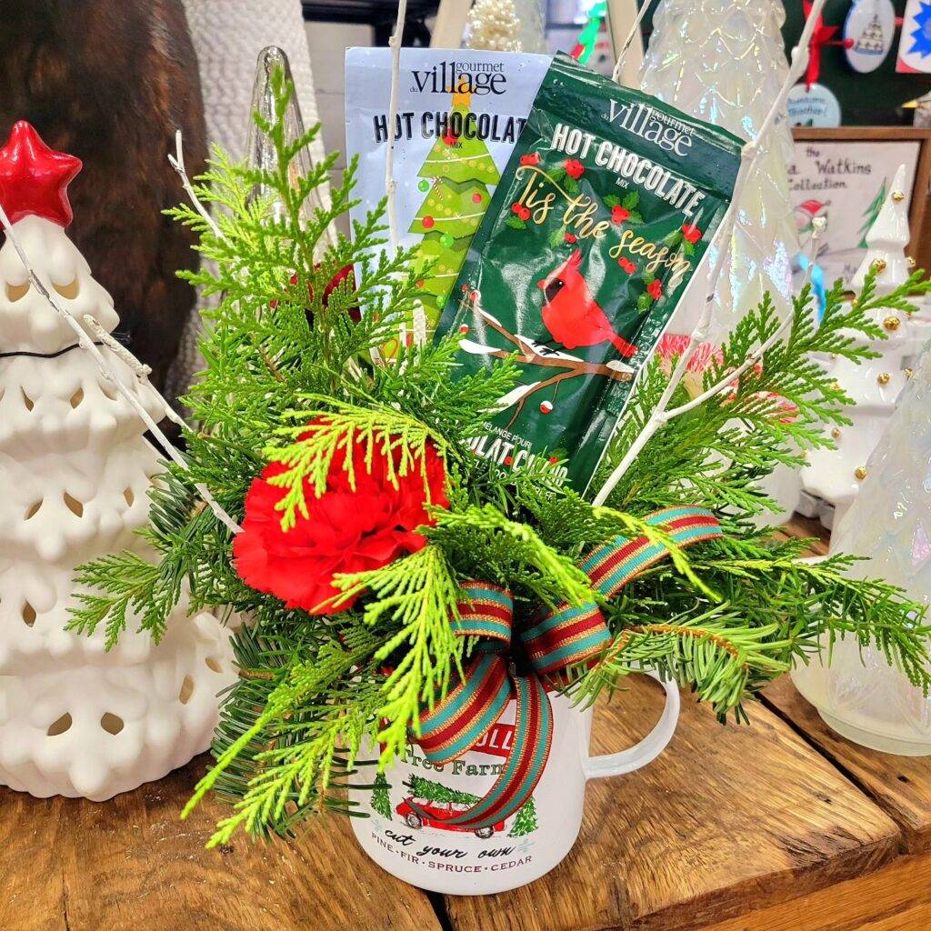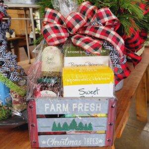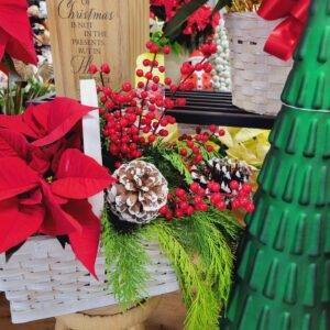 Hand-built by our designers, these custom gift baskets can be made to speak directly to the hearts of your friends & family! Choose your container, pick out your food & gift items, & then trust us to wrap it all up beautifully with some evergreen & a Christmas bow! An easy & personal gift that will bring joy to just about anyone!